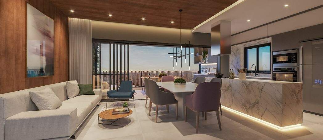Apartamentos de 116m² com até 03 suítes, onde é possível optar por até 06 plantas diferentes, com opções de sala ampliada e cozinha em ilha.